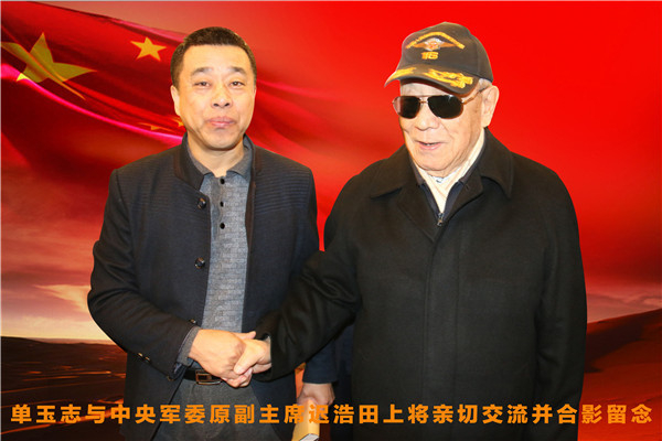 单玉志与中央军委原副主席迟浩田上将亲切交流并合影留念 单玉志与著名书画