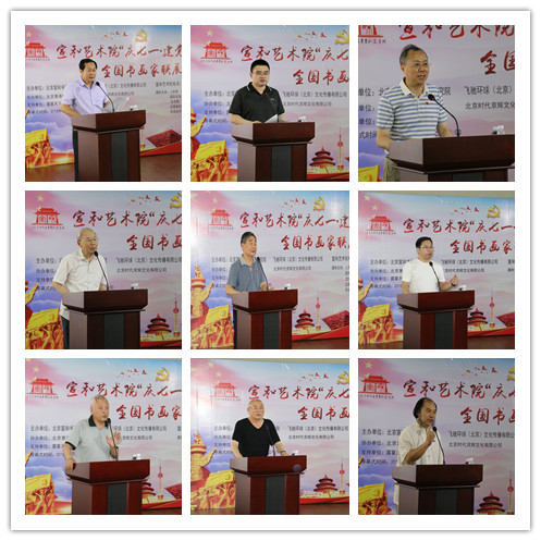 本次活动由北京宣和书画艺术研究院常务副院长许顺喜主持、秘书长杨东亮致欢迎词;北京惠通博文书画院荣誉院长彭云华、北京师白艺术研究会会长娄述德、外交部原驻卢森堡大使马志学、露宴天下酒业集团董事长蒋宏勇、北京宣和书画艺术研究院副院长高源、华夏龙文北京国学文化研究院常务院长程文鸣、中国文联机关原党委副书记谷福海等嘉宾发表了不同讲话;最后,由北京宣和书画艺术院名誉院长王云鹏宣布画展开幕。