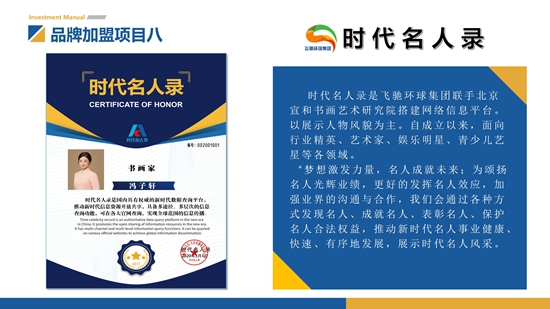 飞驰环球集团创业平台品牌加盟项目:时代名人录展示时代名人风采